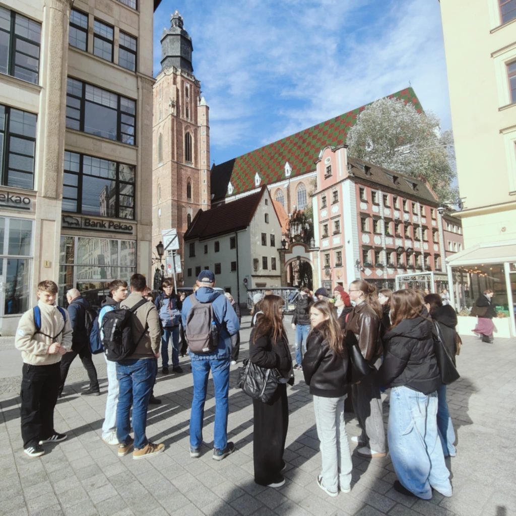 👉 Wtorek to dzień pełen wrażeń we Wrocławiu – podczas zwiedzania z przewodnikiem uczniowie w formie warsztatów odkrywali ślady kultury niemieckiej, ucząc się historii i współpracy poprzez zabawę i refleksję.