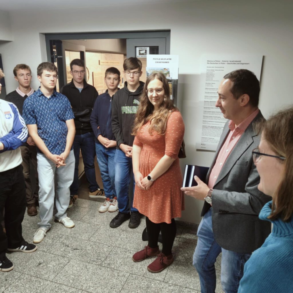 👉 Środa przyniosła wizytę w Centrum Dokumentacyjno-Wystawienniczym Niemców w Polsce w Opolu, gdzie młodzież poznała wspólne wątki historii obu narodów. Tego dnia grupę odwiedził również pan Marcin Gambiec, Dyrektor Departamentu Edukacji i Rynku Pracy.