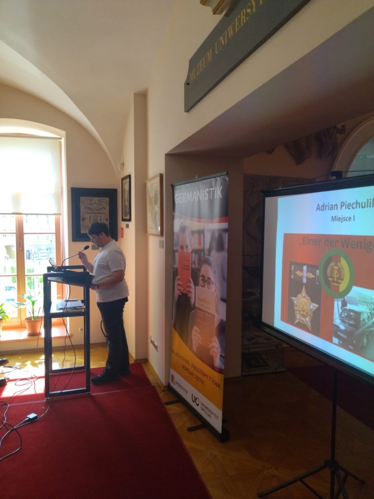 Adrian Piechulik zdobył 1 miejsce w IV edycji konkursu literackiego organizowanego przez Germanistykę Opolską. Tym razem za opowiadanie pt. „Einer der Wenigen” ( tł. „Jeden z niewielu”).